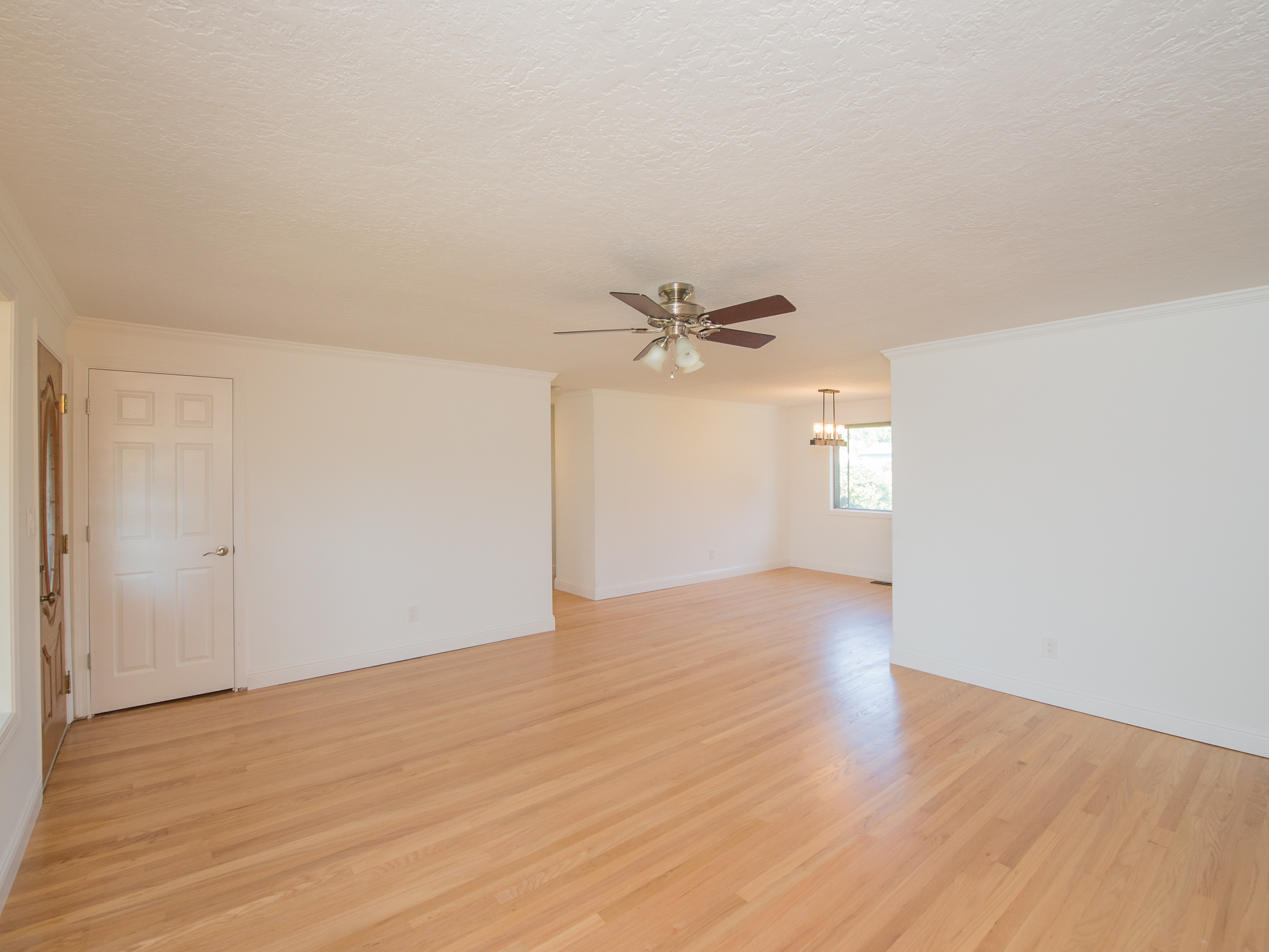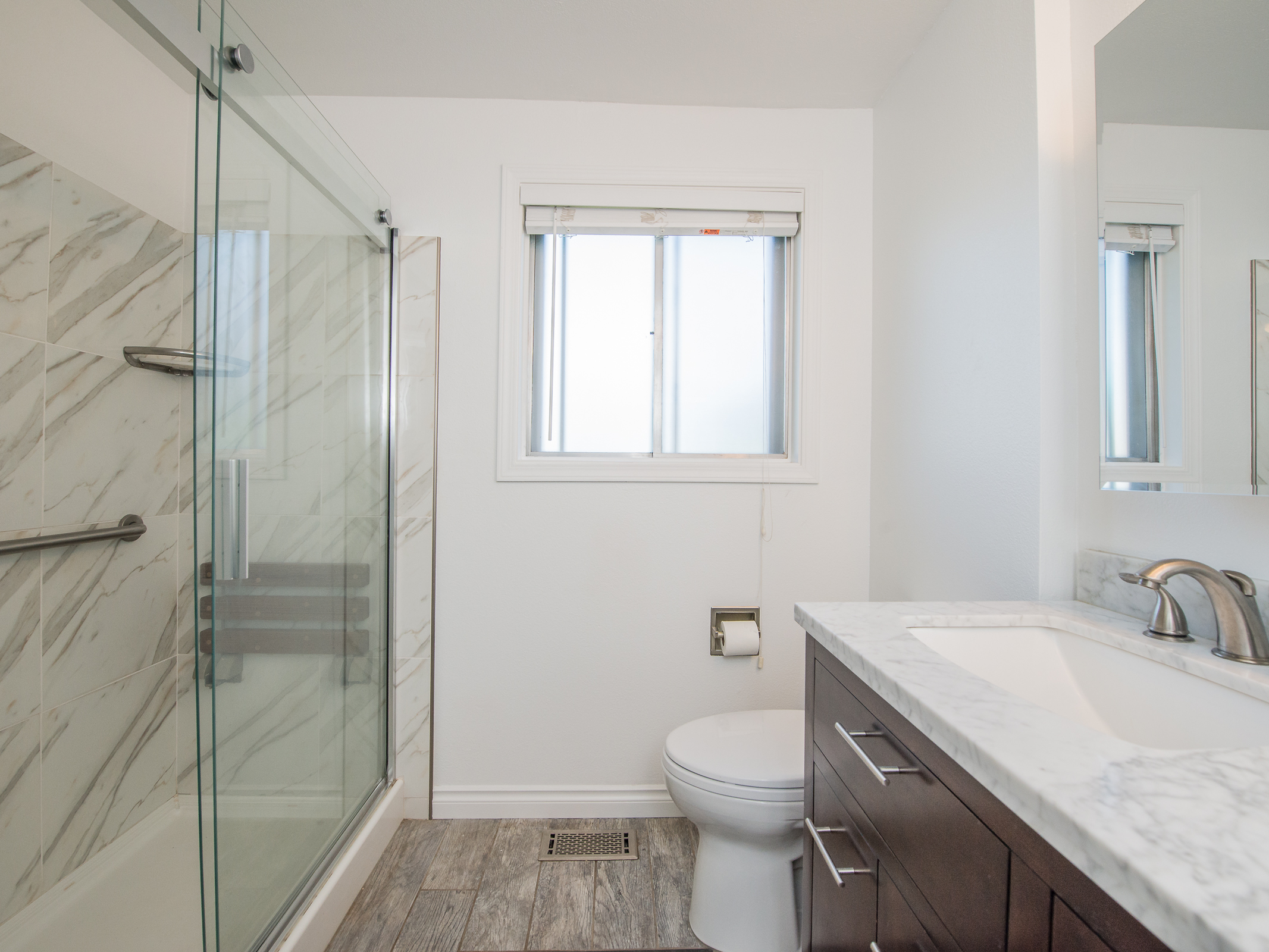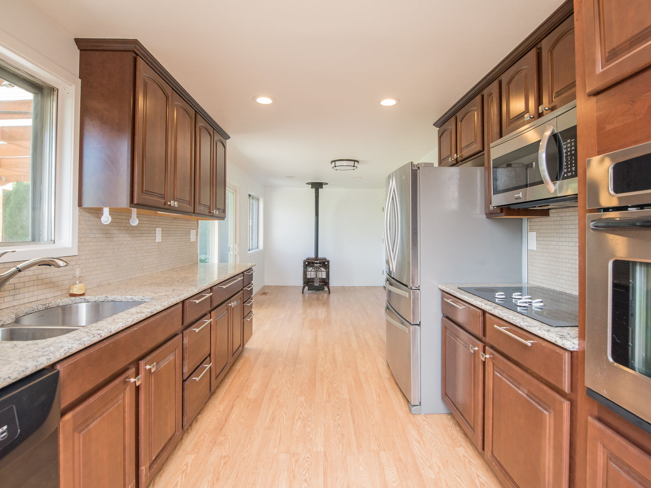 What’s more is that the house has been gone through inch by inch!! There’s an updated kitchen with quartz counters, deluxe stainless steel appliances (the fridge is so hi-tech it’s intimidating), a dining area with sliders to the covered patio, and even a pellet stove for cozy entertaining. The bathroom has been updated too, with more quartz and an accessible shower. There’s a new 2017 Furnace/AC, and new electrical panel. Hardwoods are newly refinished and not yet touched! There’s also a potential separate lower living area with private access/egress that is currently the ideal rumpus room as it includes a wet-bar, laundry, fireplace, shop & bath! There’s even a park and elementary school nearby. The private school, La Salle isn’t far either.