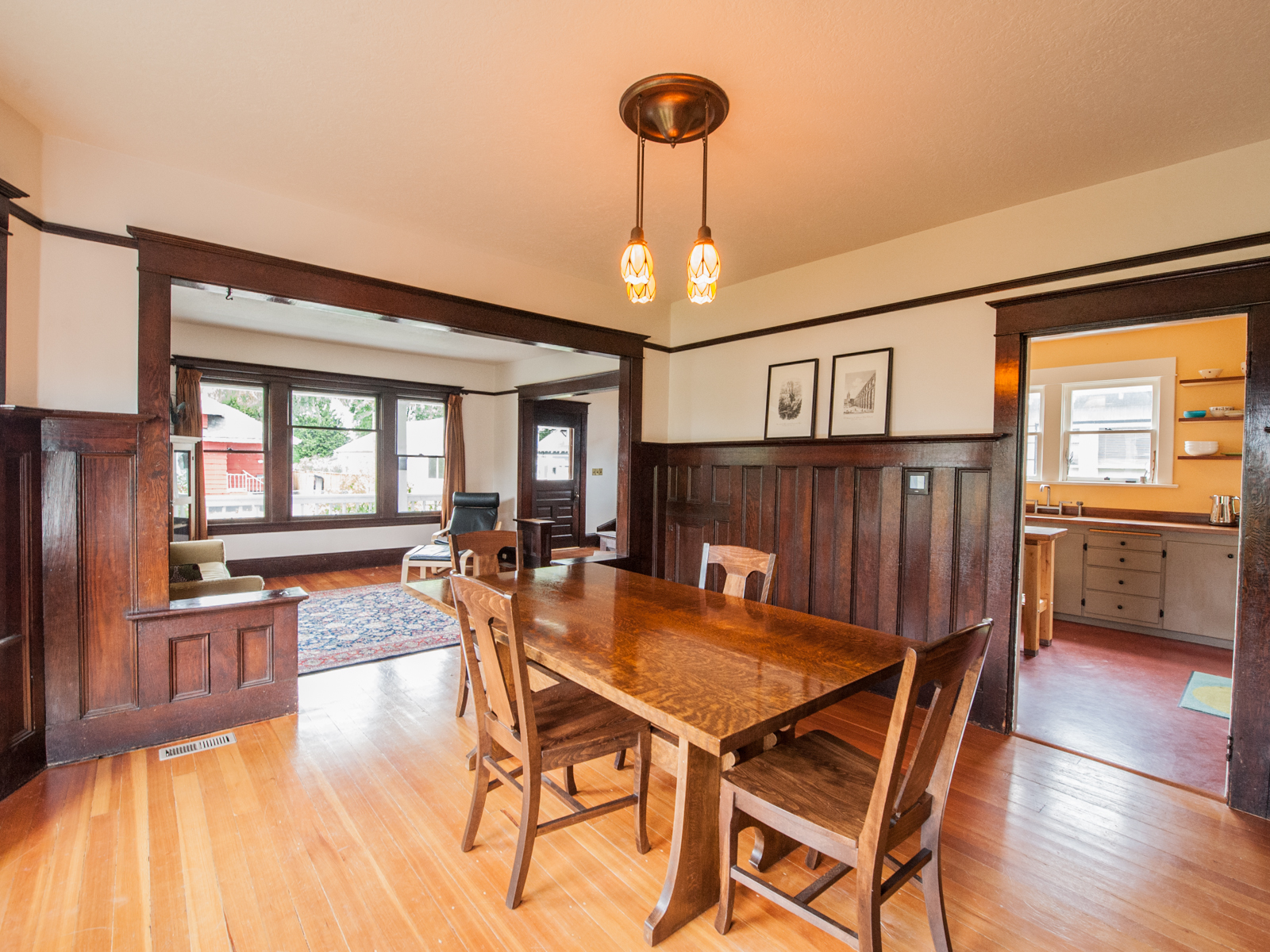 Live in the heart of Mt. Scott/Arleta neighborhood in this “period-perfect” restored craftsman bungalow. It features four bedrooms, original unpainted woodwork, hardwoods, bath with clawfoot tub, grand dining room with built-in hutch and wainscoting, large farmhouse-style kitchen, partially finished basement, private yard with flagstone paving, and a dream 2 car garage with walk-up storage and 220v electricity service!