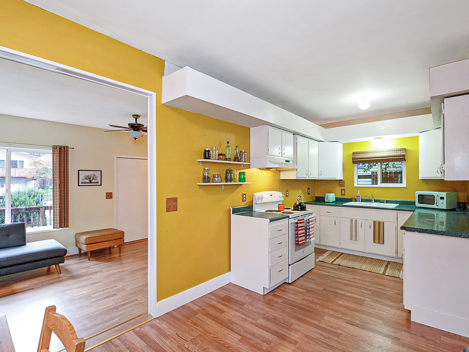 Maybe you also dreamed of having a kitchen big enough to work in? One with cabinets and counterspace enough to wrangle some “sous-chef” “helpers” into chopping and mixing to your own heart’s desire. Perhaps you’re just tired of every meal being like a chaotic episode of Bake-off? Or, could it be that you’ve been longing for a separate eating area so that dinner time was also quality time? The potential for greatness is here and what’s already in place is vast! Look at all that counterspace!